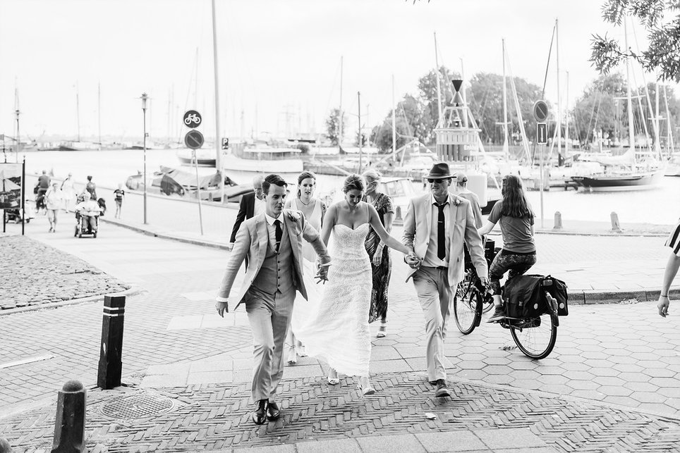 Deze internationale bruiloft van de Australische Gabriel en Nederlandse Elize vond plaats in het pittoreske Enkhuizen. De plek waar Elize (en ook ik) is opgegroeid. Inmiddels wonen ze samen aan de andere kant van de wereld, in Australië, maar kwamen ze toch naar ons kleine kneuterige landje om deze wereldse liefde officieel te maken. Buiten, tussen de Hollandse appelbomen van pluktuin ’t Keetje (Hollandser dan dit kun je het niet krijgen, toch?), gaven Elize en Gabriel elkaar het ja-woord (of eigenlijk ‘’I do’’, want de ceremonie was deels in het Engels, wel zo leuk voor de familie die was overgevlogen uit Australië).
